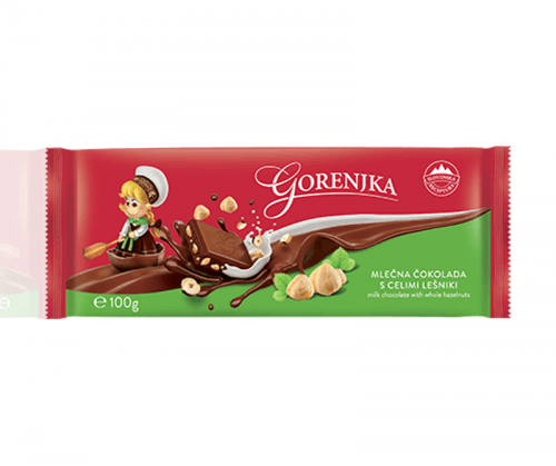 Mlečna čokolada s celimi lešniki je sinonim Gorenjke. Najbolj priljubljen okus Gorenjka ponuja v kar 7 različnih velikostih. Čokolade se ponašajo z visokim deležem lešnikov – od 16 do celo 25 % skrbno izbranih lešnikov najvišje kakovosti.